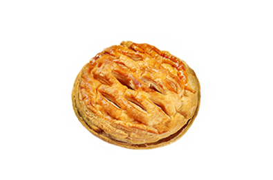 采用優質新西蘭黃油和高耐性冷凍酵母,使用荷蘭設備144層折層,加入精心調制的蘋果內餡,烤制之后外皮酥脆,內餡風味獨特